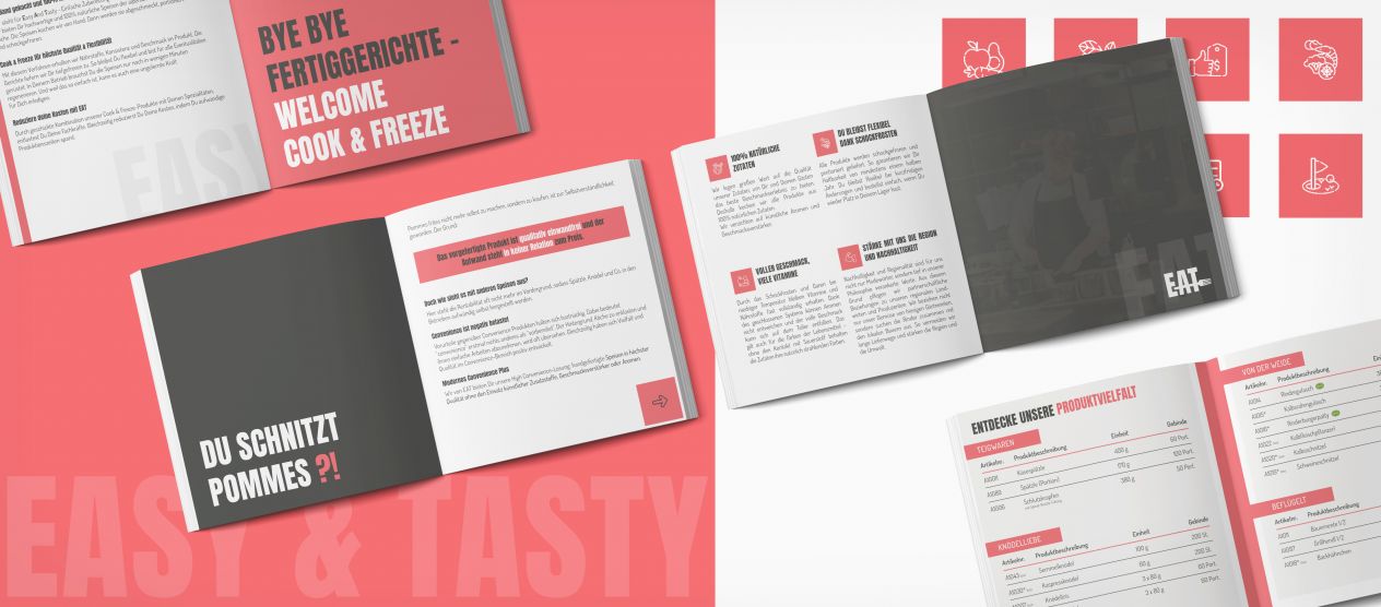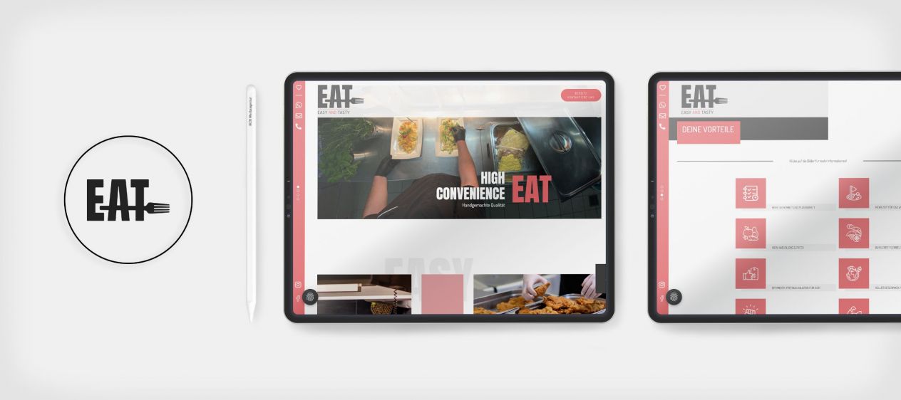 In einem mordernen Look erscheint das Logo von EAT nach seinem Update und verkörpert die dauerhafte Weiterentwicklung des Unternehmens. Zudem wurde damit eine Grundlage für die Gestaltung einer Broschüre und Webseite geschaffen.