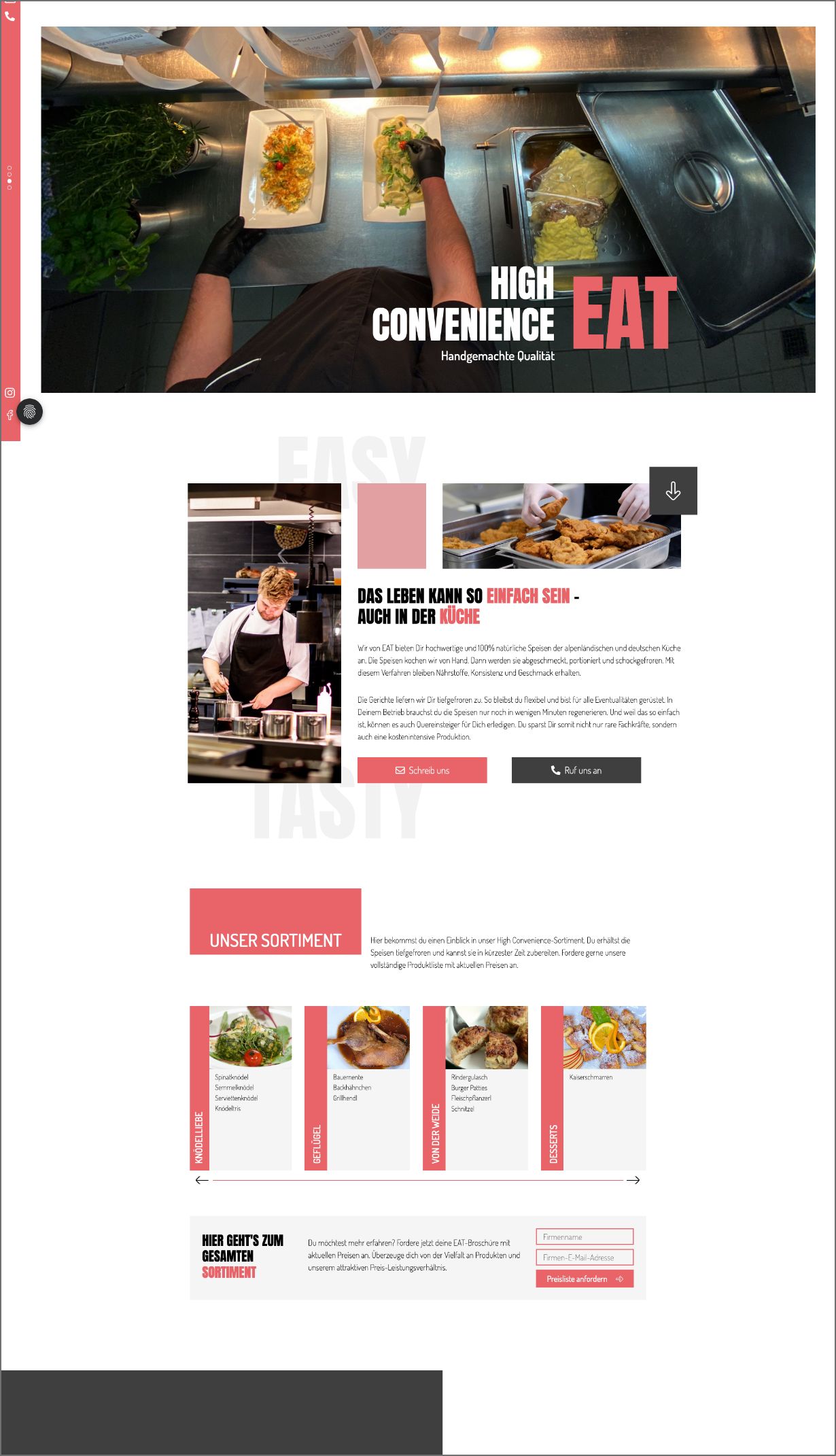 In der Welt der Gastronomie gibt es viele Vorbereitungen, die vor und nach der Ankunft des Gastes getroffen werden müssen. Einige dieser Aufgaben sind nicht besonders anspruchsvoll, erfordern jedoch viel Zeit und Mühe, wie das Rollen von Knödeln oder das Zubereiten von Spätzle. EAT hat erfolgreich versucht, eine Lösung für dieses Problem zu finden, um das Leben einfacher und kosteneffizienter zu gestalten. Der Name EAT steht für "Easy and Tasty", was die Leistung perfekt beschreibt: Die Gerichte werden von Hand hergestellt, in Portionen abgefüllt und schockgefroren, um dann tiefgekühlt geliefert zu werden.