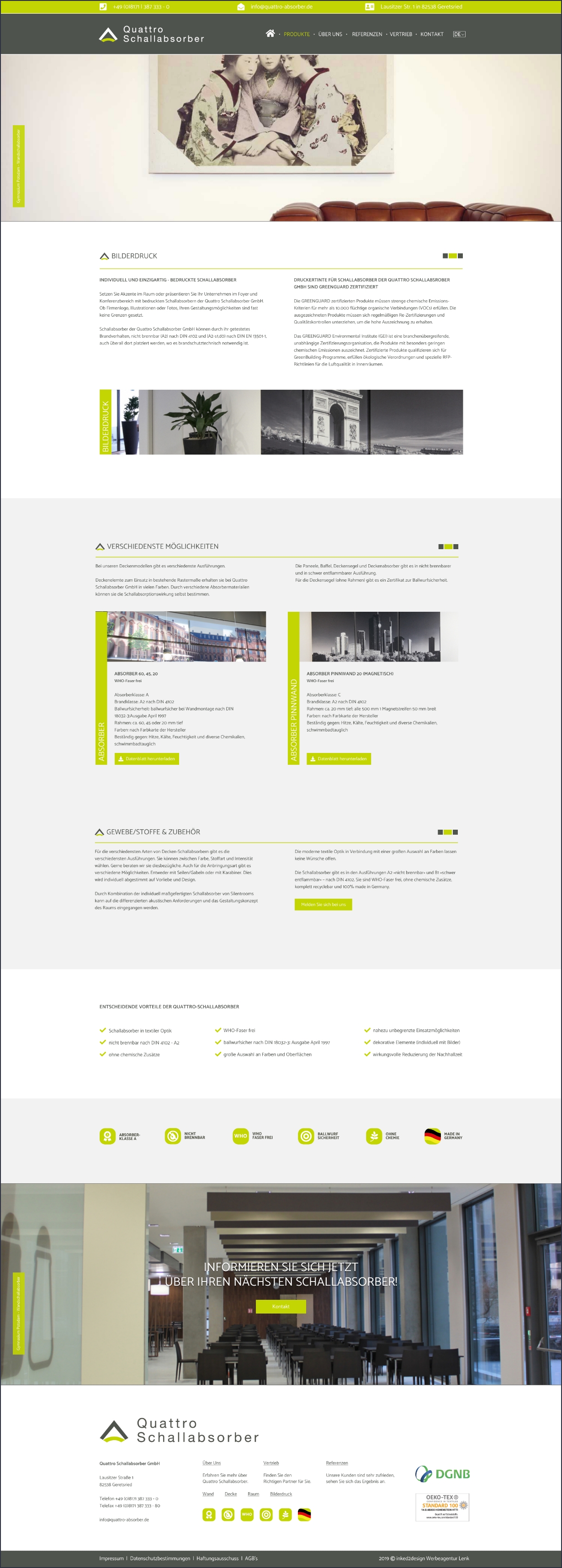 Das Unternehmen Quattro Schallabsorber GmbH produziert seit 2009 Schallabsorber in textiler Optik. Nahezu alle Anforderungen werden durch ein individuelles Gestaltungskonzept, dass auf die differenzierten und akustischen Ansprüche des Raumes eingeht, gelöst.
