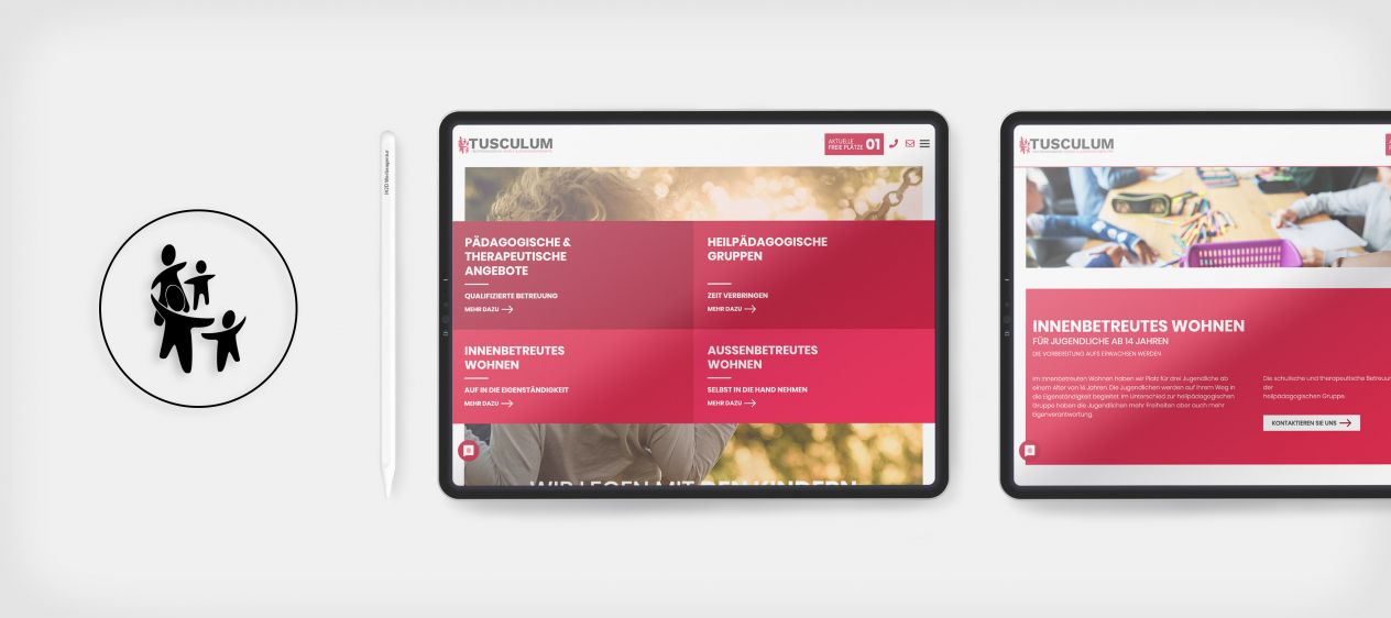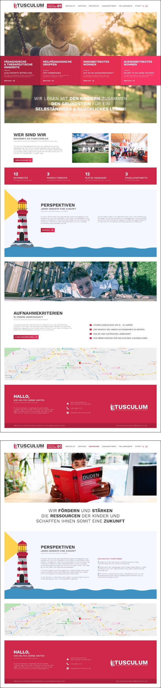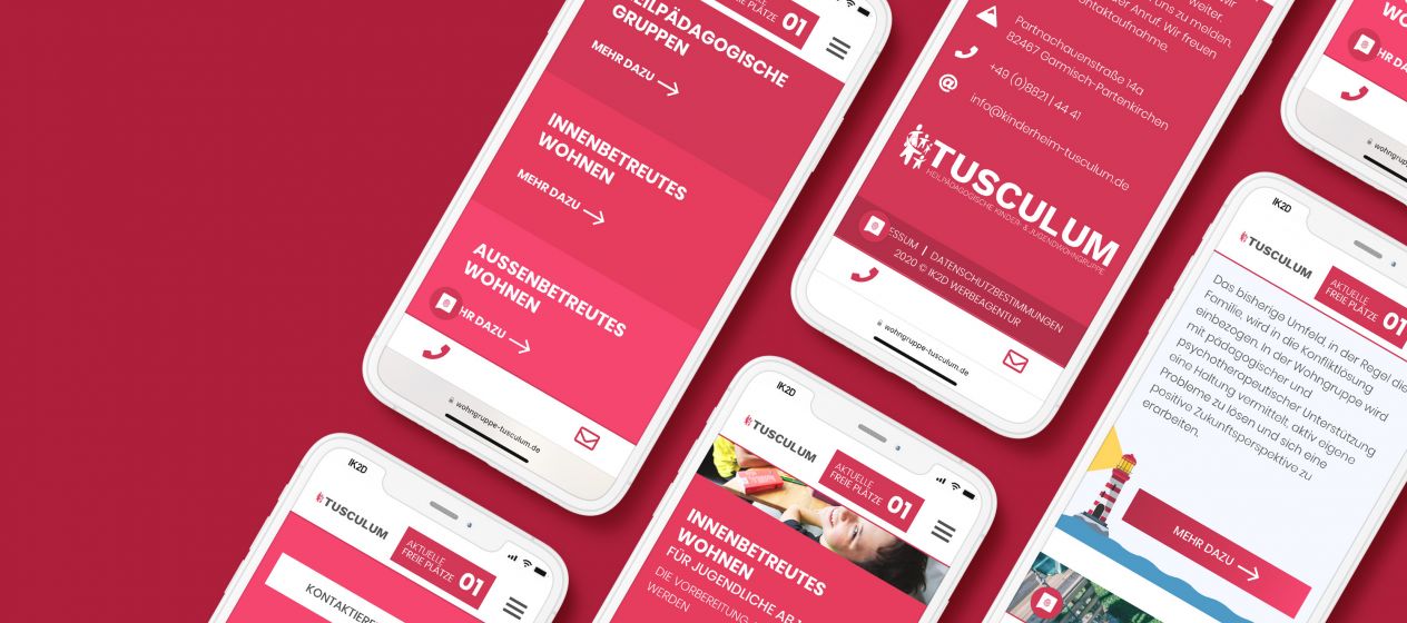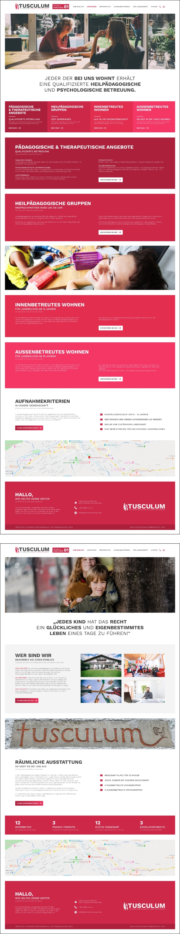 Das Haus Tusculum ist eine heilpädagogische Kinder- und Jugendwohngruppe in Garmisch-Partenkirchen. Sie geht auf Kinder und Jugendliche mit besonderem pädagogischen und therapeutischen Bedarf ein. Das Team von zwölf Mitarbeitern kümmert sich um die Betreuung und Unterstützung der Kinder ab sechs Jahren, von denen viele das Ziel haben, wieder in ihre Familien zurückzukehren und eigenverantwortlich zu leben. Um Familien einen Einblick in die Einrichtung, Therapie und der Gemeinschaft zu geben, erstellten wir die Website, auf der alle Schritte und Abläufe dargestellt werden.