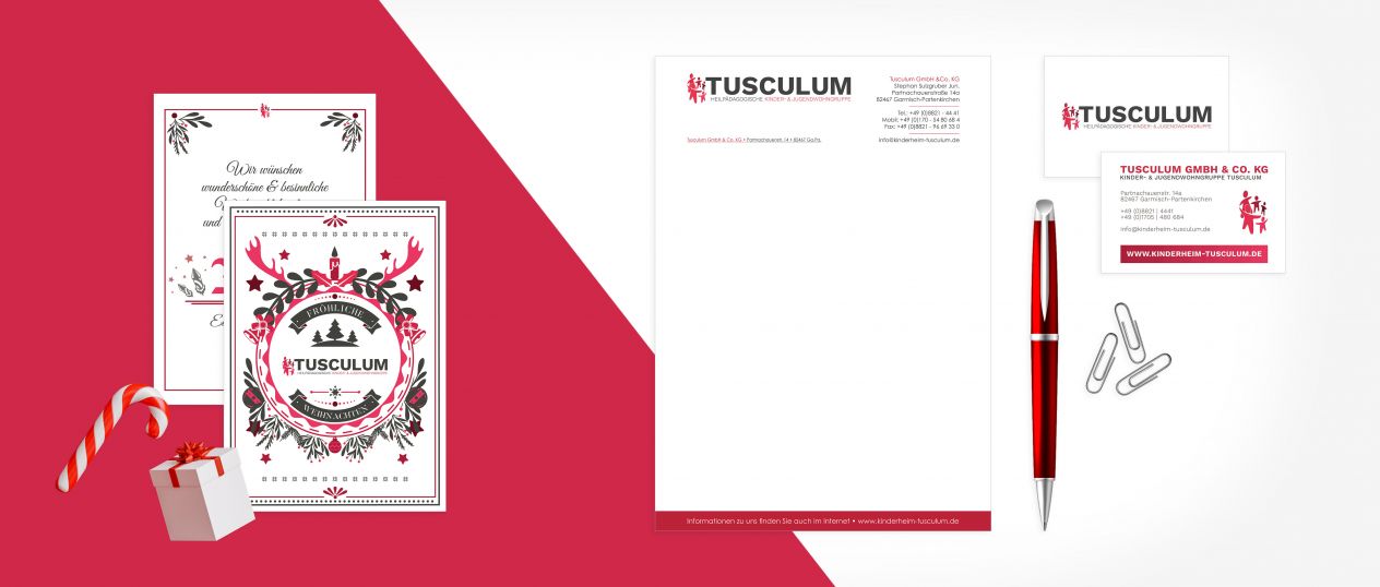 Das Miteinander ist bei Tusculum ein primärer Aspekt, das wir durch die Bildmarke deutlich darstellen. Sowohl in den Wohngruppen, mit den Betreuern, als auch bei der Konfliktlösung mit der Familie ist ein gemeinsames Arbeiten unerlässlich um Fortschritte zu erzielen. Bei der Darstellung wurde dabei die Gemeinschaft als ein primärer Pfeiler verwendet der sich in allen Produkten widerspiegelt.
